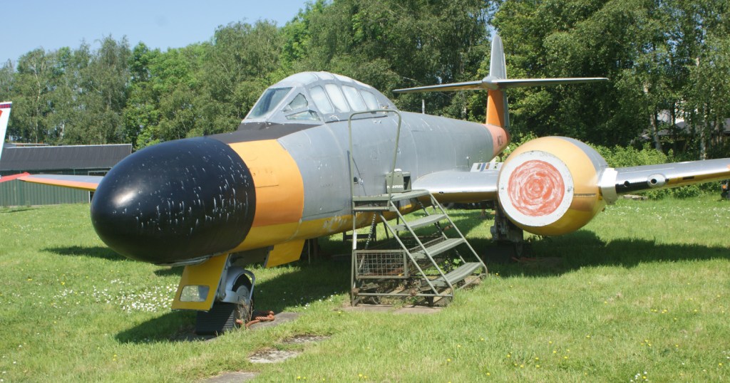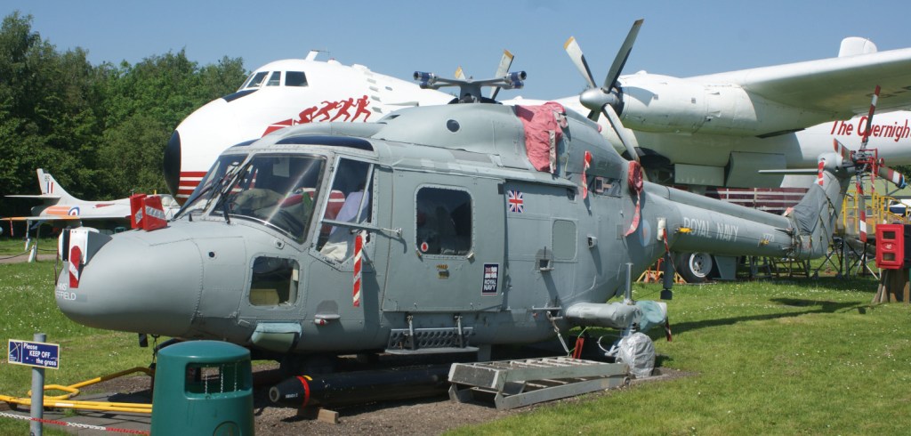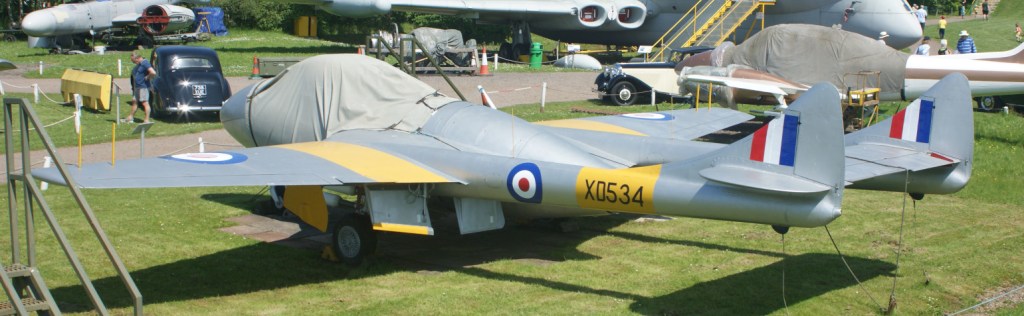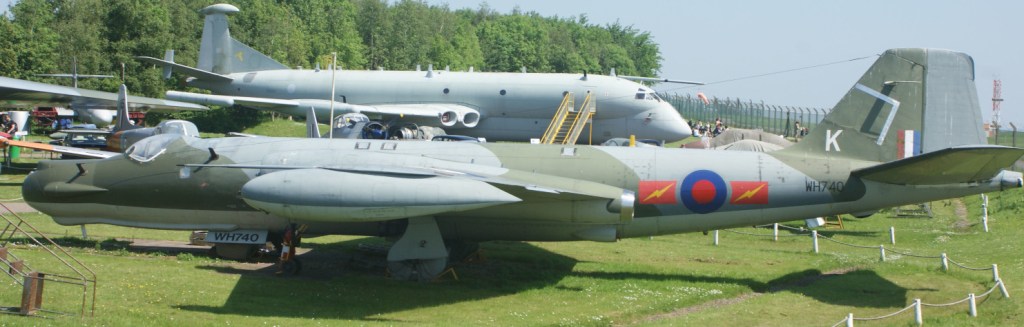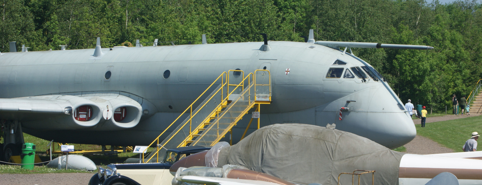 I had not previously seen many examples of the DH Vampire, so the 2 T11 variants on display were interesting to see (XD447 and XD534). A curator explained to me that the yellow-painted aerials on the wings were part of a navigation system, based on timing differences of signals being received across the airframe. At other displays, I also had not previously noticed the large number of aerials mounted on the Nimrod’s upper fuselage. They were probably more noticeable here because a raised mound surrounding the displays gives you an elevated viewpoint.