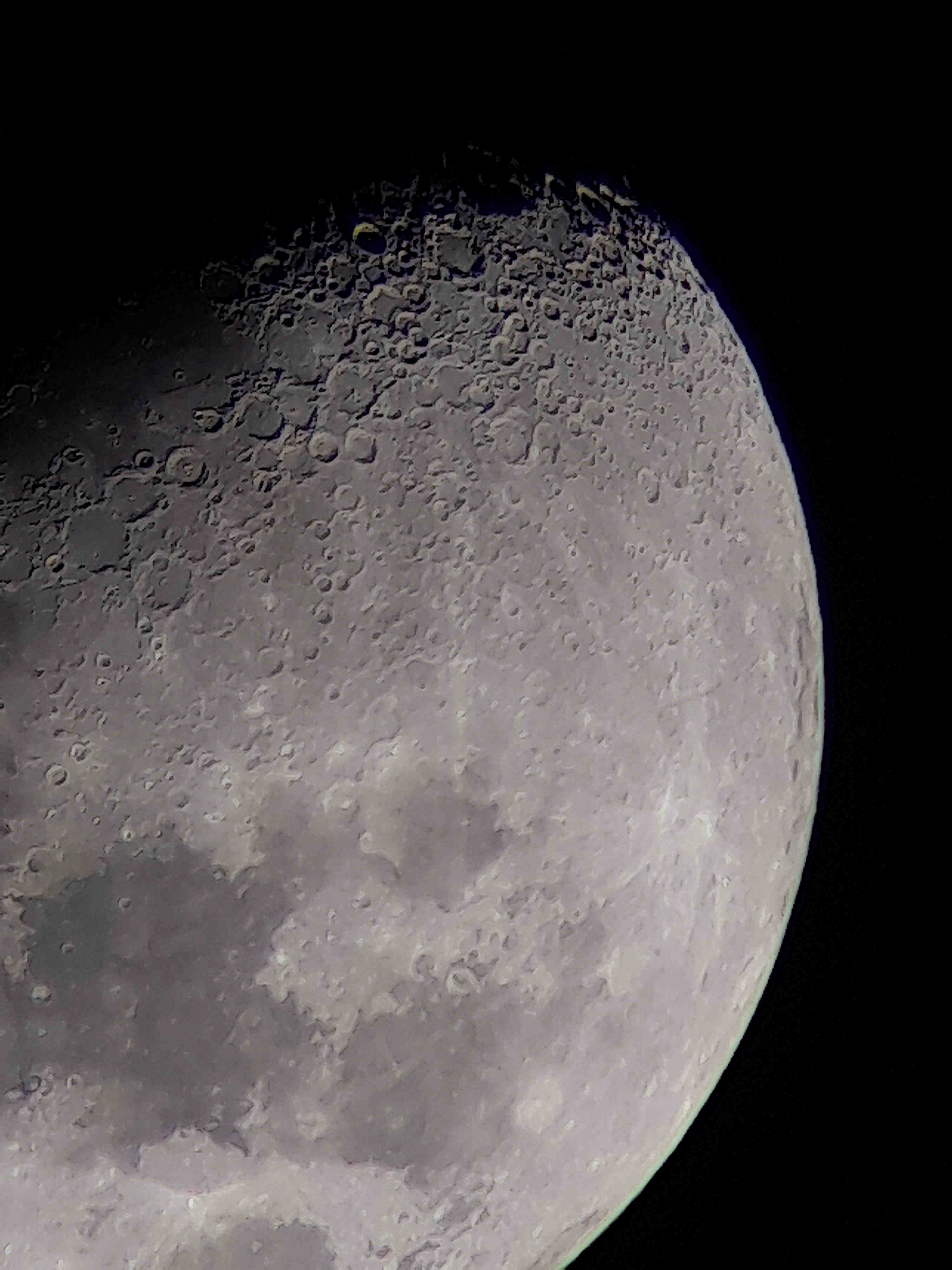images taken by afocal projection using a Samsung A21S phone camera attached to a 20mm plossl eyepiece on a 6″ Sky-Watcher Startravel-150 refractor. Upper image x38 magnification, lower images ~ x76.
