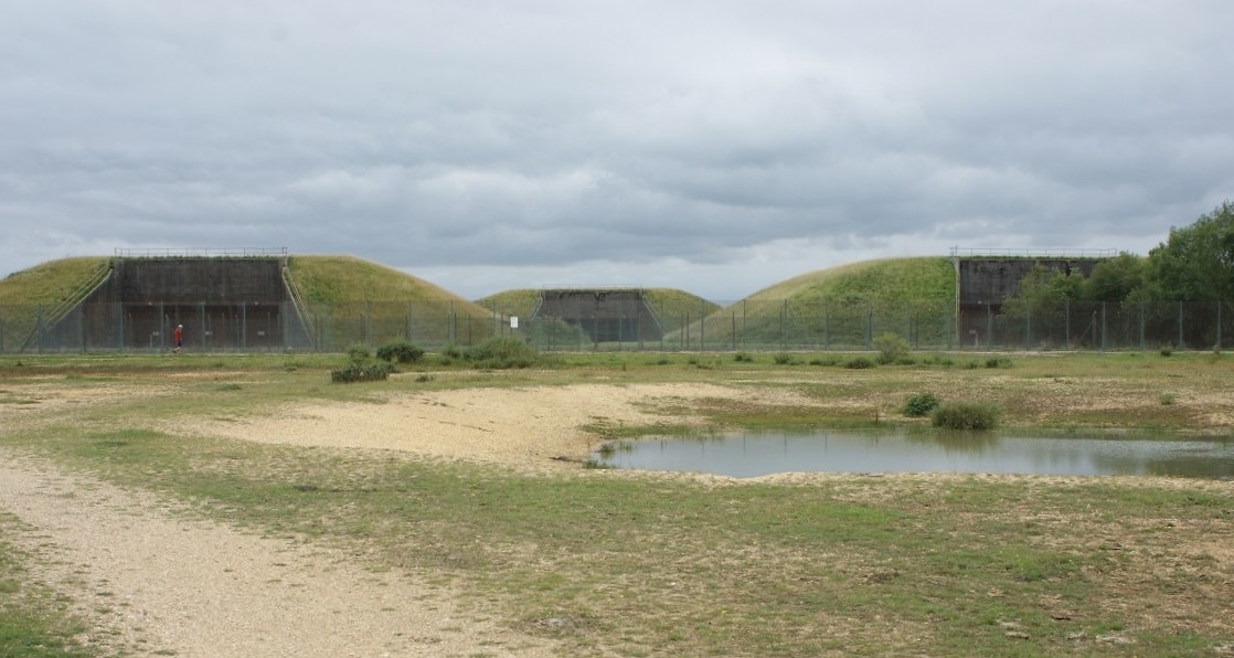 GAMA: “Ground-launched Cruise Missile Alert and Maintenance Area”. A series of hillock-shaped bunkers designed to withstand a direct hit from a 2,000 pound bomb or a 10-megaton thermonuclear airburst.